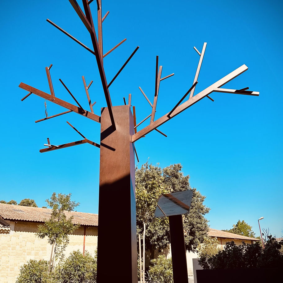 Sculpture Arbre Métallique "Arbre à planches" hauteur 4 m. pour parcs et jardins d'exceptions.